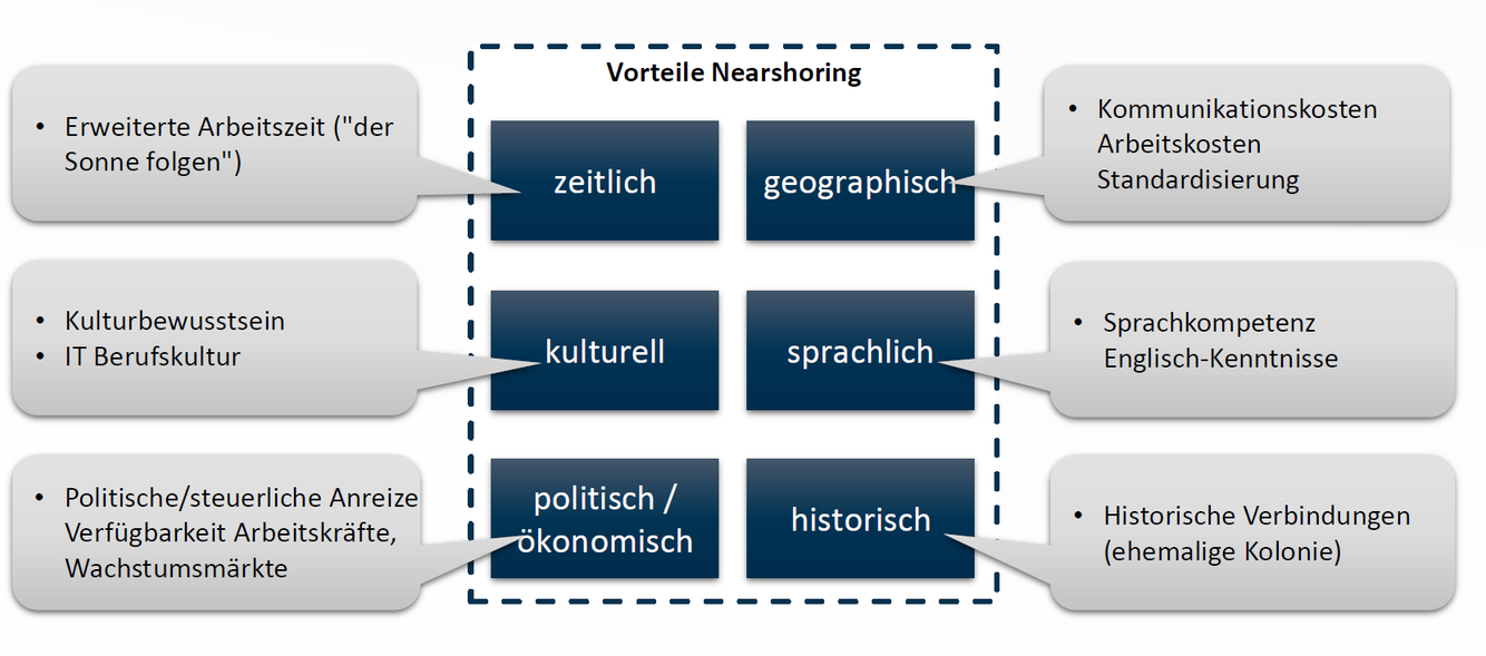 Nenne die 6 Dimensionen der Nearshoring-Vorteile