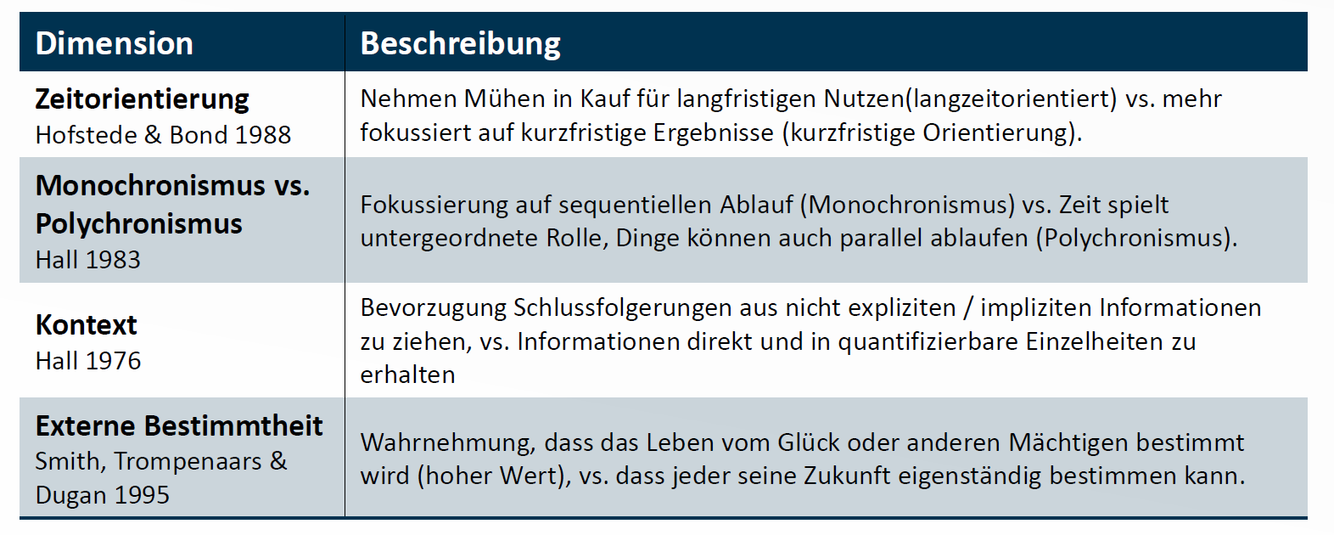 Nenne und erläutere die 4 Dimensionen zur Bewertung nationaler Kulturwerte, die Hofstede nachträglich noch hinzugefügt hat