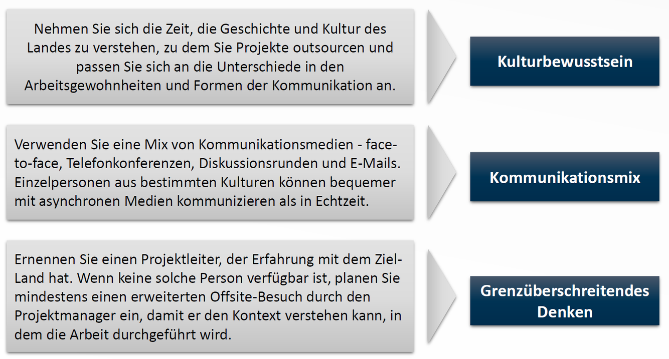Nenne Maßnahmen zur Reduzierung der Nachteile von Farshoring hinsichtlich der 6 Dimensionen