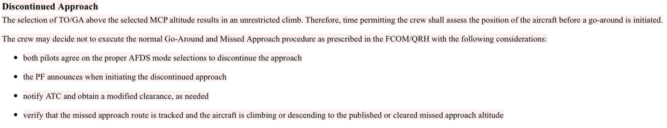 The crew may decide not to execute the normal Go-Around and Missed Approach procedure as prescribed in the FCOM/QRH with the following considerations: