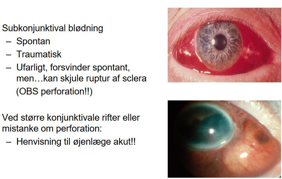 – Konjunktival blødning kanskjule ruptur i sclera – CT-
