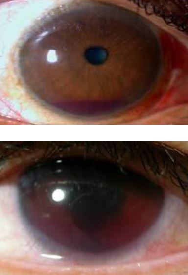 Stumpt traume mod øjet. Synligt blod i forreste øjenkammer.