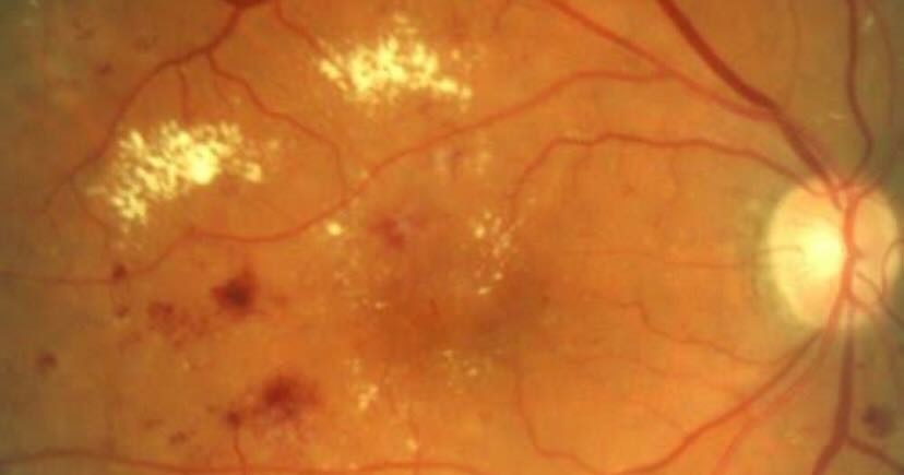 Exsudato algodonoso por áreas isquêmicas e produção de fator VEGF para angiogênese é característico de