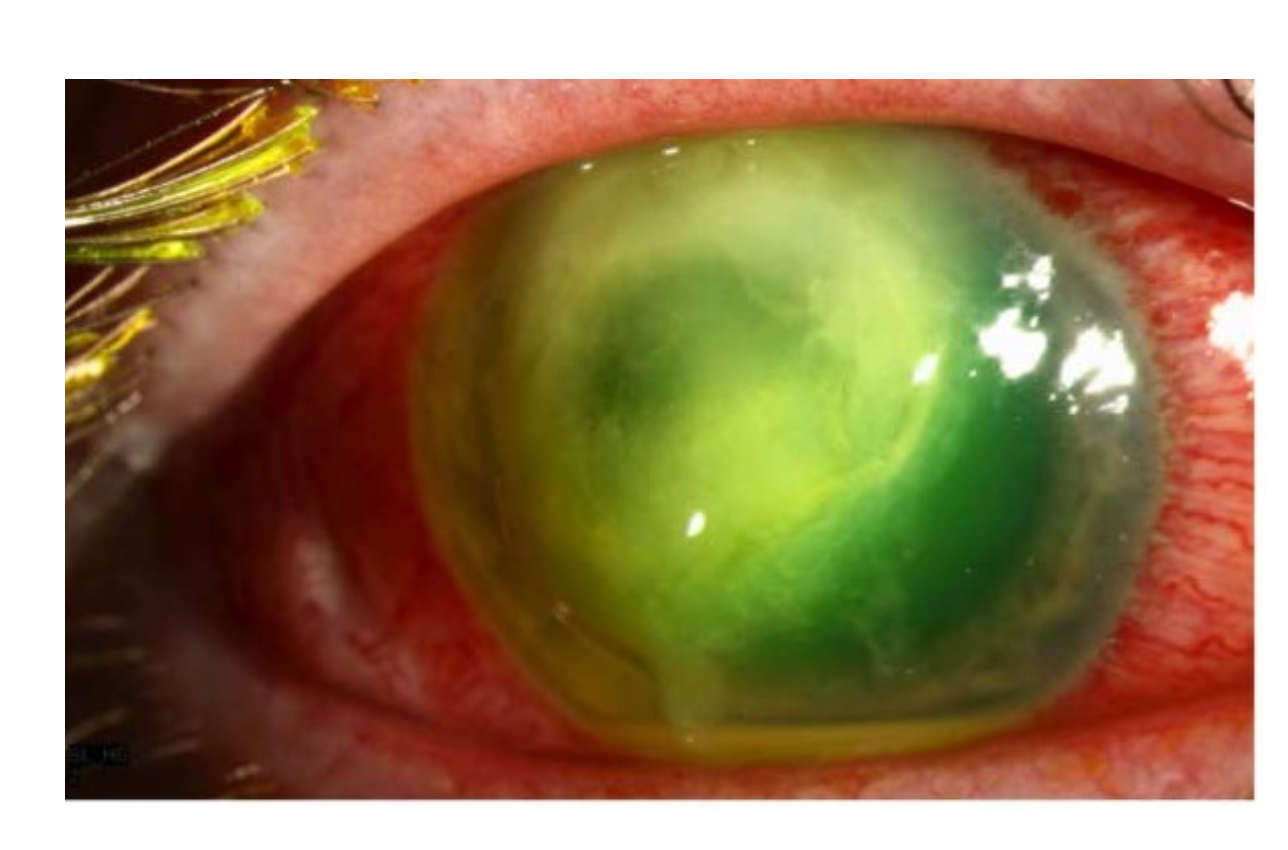 Øjenlægen mistænker pseudomonas keratit, idet patienten er kontaktlinsebruger og har udviklet