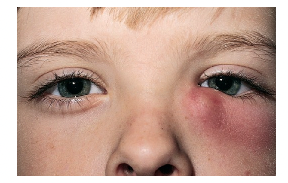 huden omkring nedre øjenlåg samt hævelse og rødme neden for mediale øjenkrog (se billede). Du