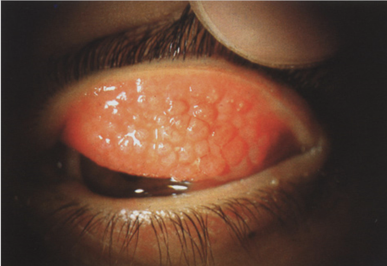 2. Vernal kerato-conjunctivit. Kan medføre kløe, corneal makulering, keratit og nedsat syn