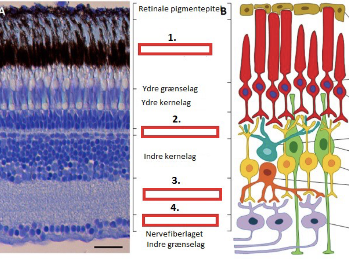 Anfør den korrekte benævnelse af de markerede lag i retina: