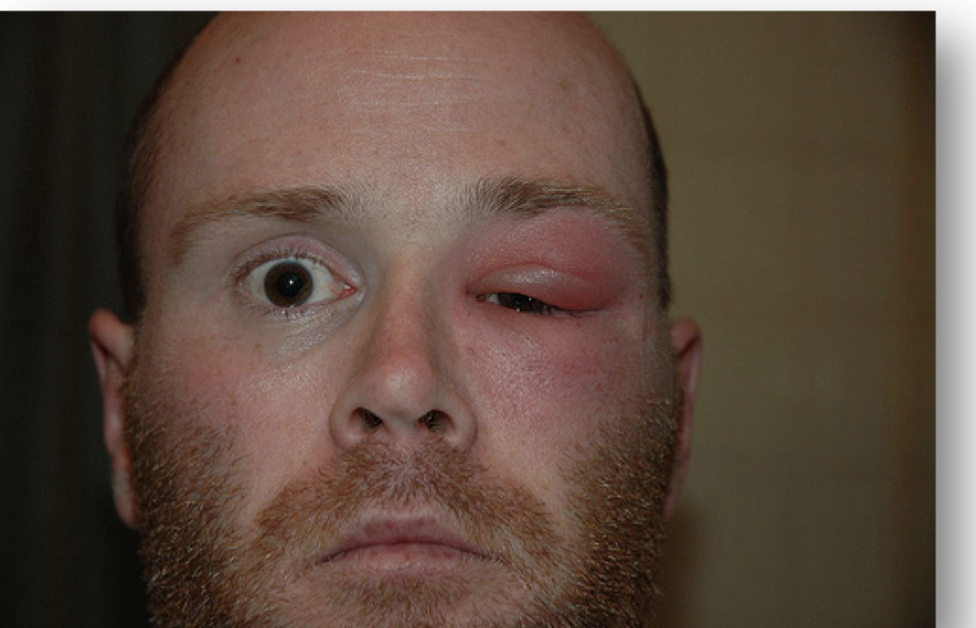 23-årig, sund og rask mand kommer ind i vagten på øjenafdelingen med voldsomt hævede venstresidige