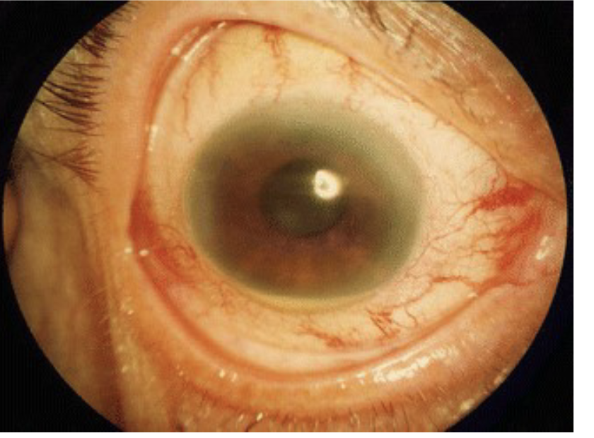 2. Du mistænker akut vinkelluknings glaukom. Hvilke øjensymptomer ses oftest ved denne sygdom?