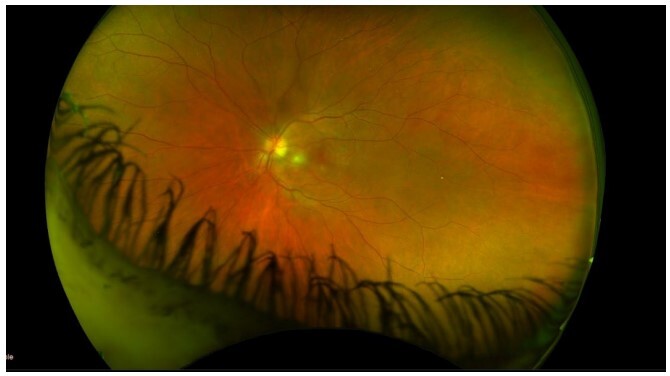 Der er tale om en fremskreden, rhegmatogen amotio, centrum er afløst og der findes en enkelt retinal rift