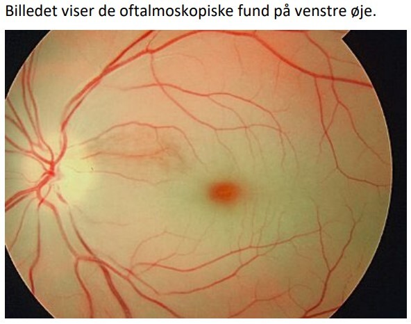 Billedet viser de oftalmoskopiske fund på venstre øje.