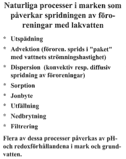 Naturliga processer i marken som påverkar spridningen av föroreningar med lakvatten