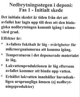 Nedbrytningsstegen i deponi: Fas 1 - Initialt skede