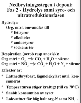 Nedbrytningsstegen i deponi: Fas 2 - Hydrolys samt syre- och nitratreduktionsfasen