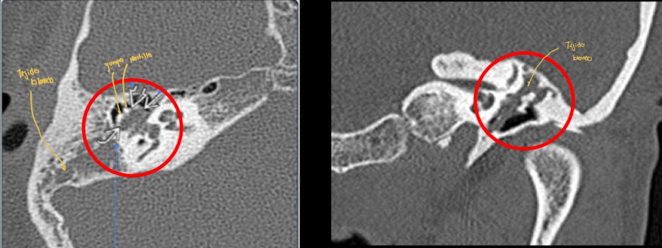 T1: masa hipointensa en oído medio