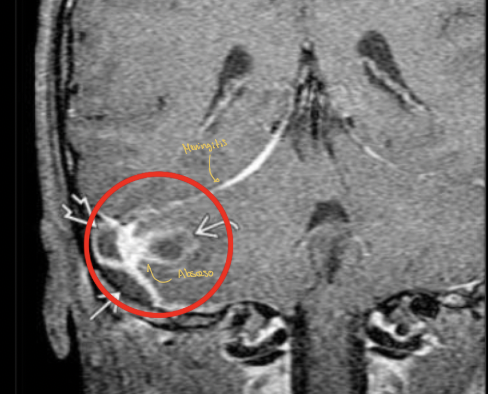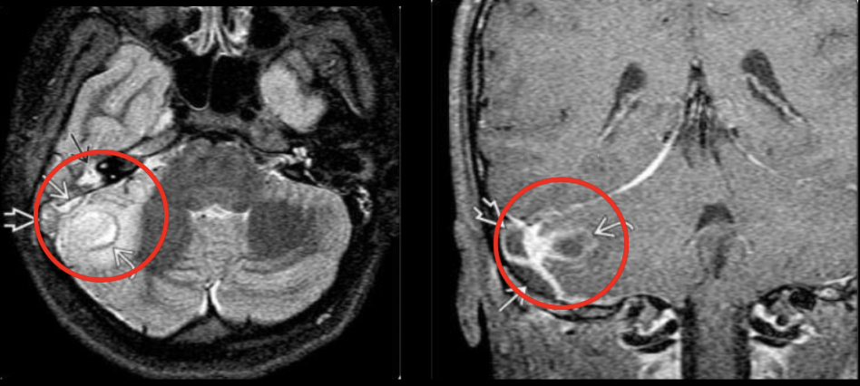 Mastoiditis con invasión a SNC con un absceso que provoca una meningitis