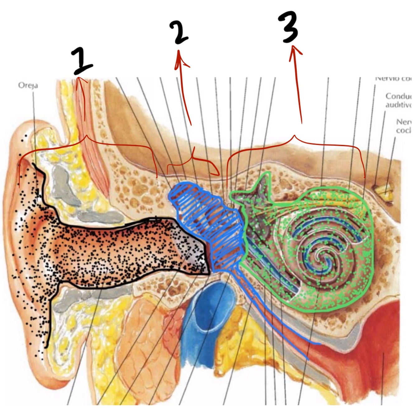Siendo el conducto auditivo externo mecánico, su función es recibir, amploifizar y conducir por membrana timpánica. Tiene un epitelio estratificado queratinizado