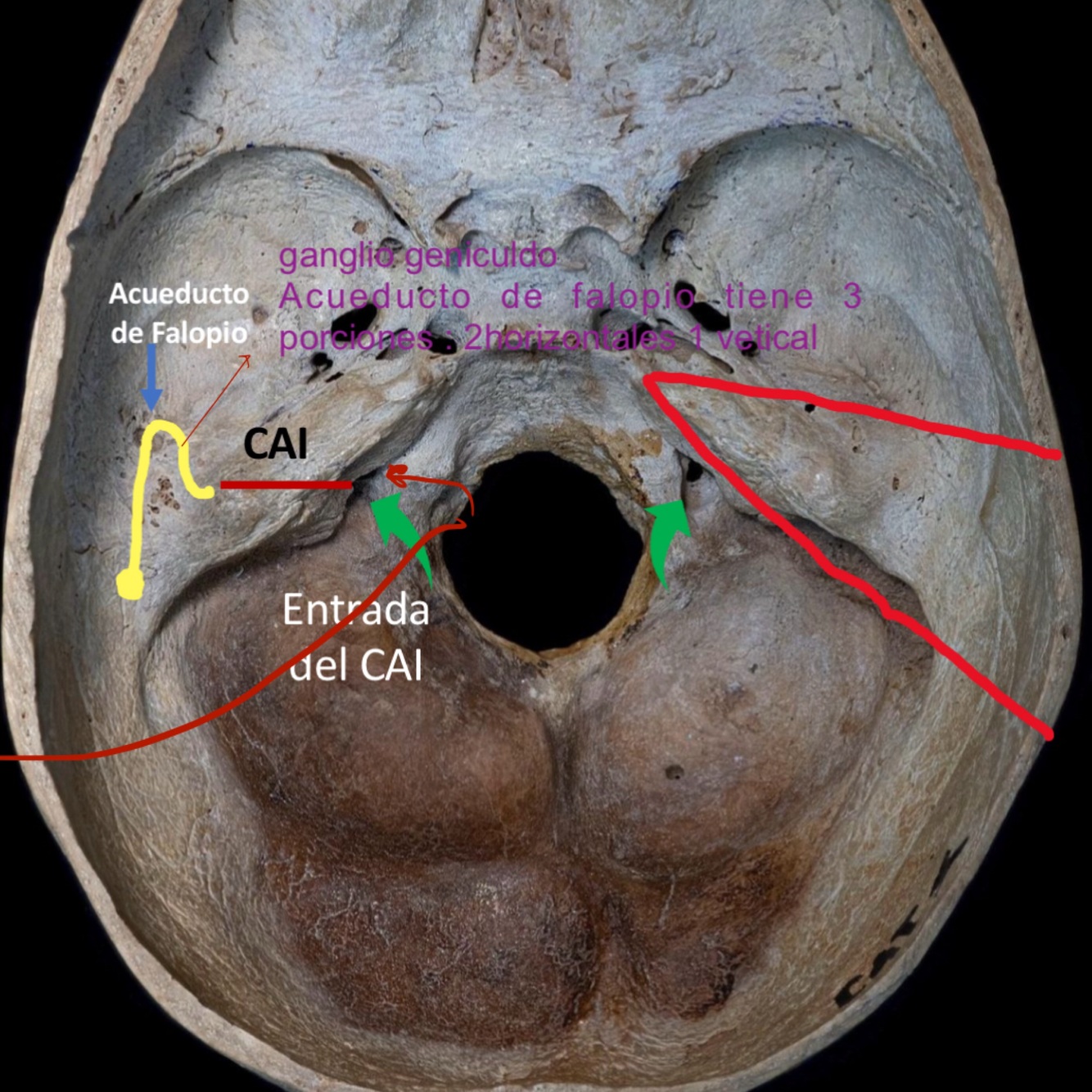 Es un túnel óseo dentro del peñasco donde se encuentra el nervio facial. Tiene una longitud de 30 mm y tiene 3 porciones (horizontal - laberintica, horizontal - timpánica y vertical - mastoidea). El orificio estilomastoideo es la salida del nervio facial del craneo