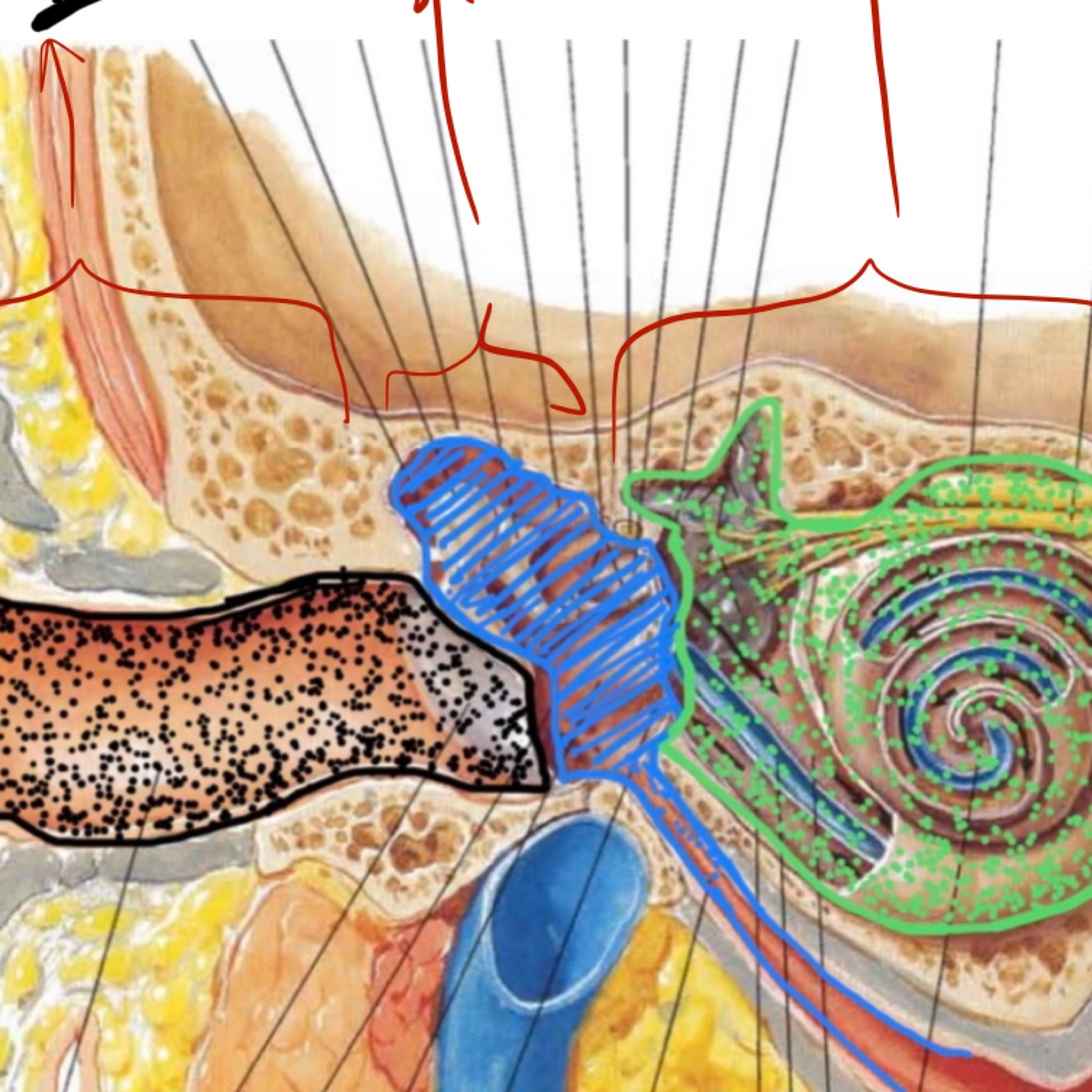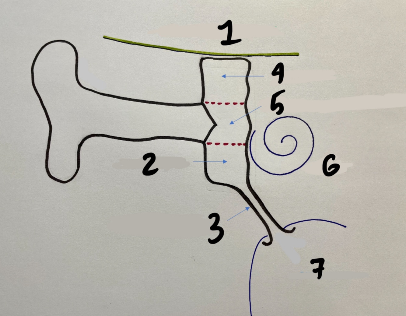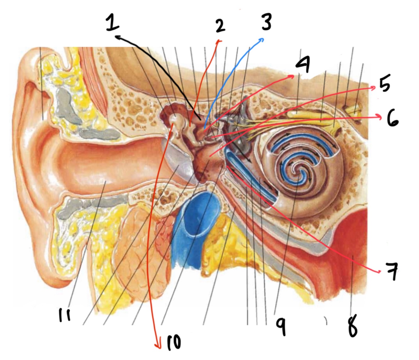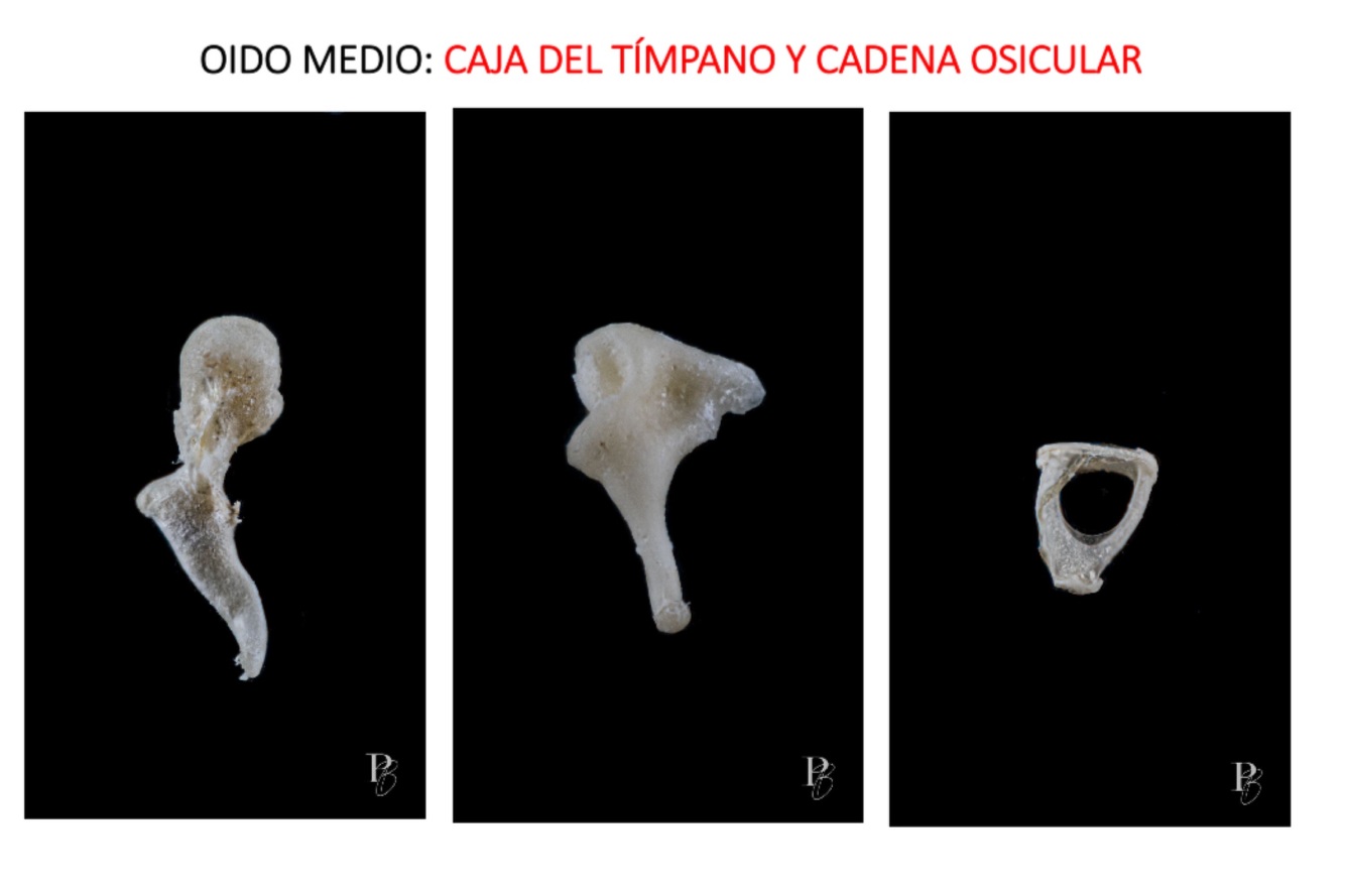 Nombra las estructuras anatómicas del oído medio que se muestran en la imagen