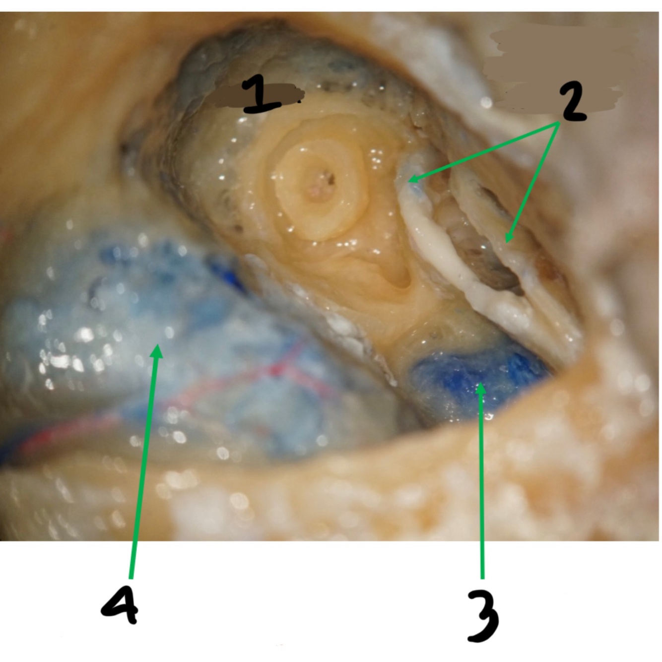 Nombra las estructuras anatómicas de la topografía de la caja timpánica