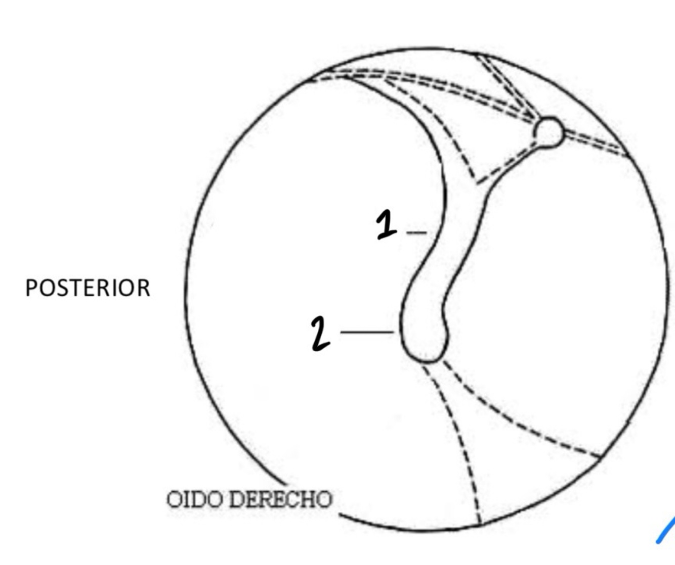 Nombra las estructuras que se muestran en una vision de la membrana timpánica a través de una otoscopia