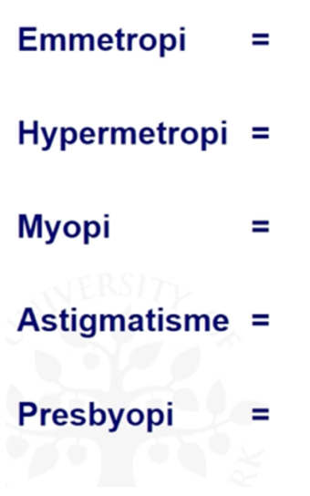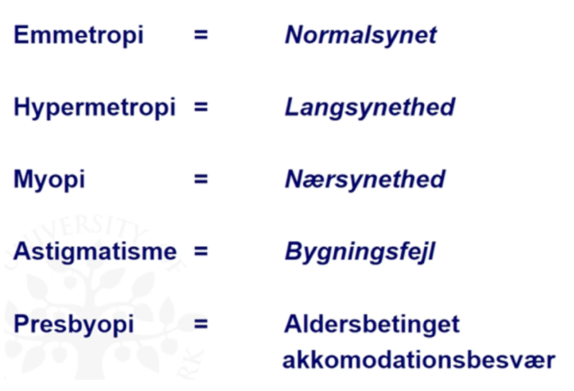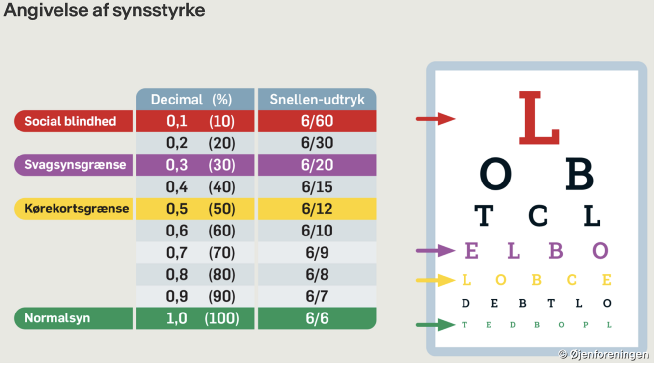 - Definition: defineres ud fra størrelsen af det mindste symbol, som kan genkendes på standardafstanden 6 meter