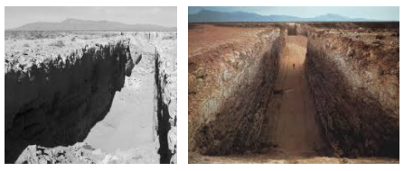 two trenches cut into the eastern edge of the Mormon Mesa, northwest of Overton, Nevada
