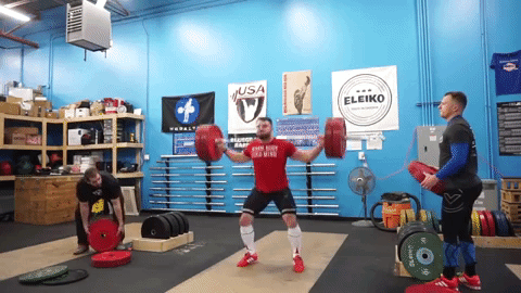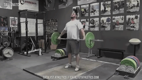 There is knee flexion in here. She bends her knees as she raises the bar above her head. She also bends them as they come back down.