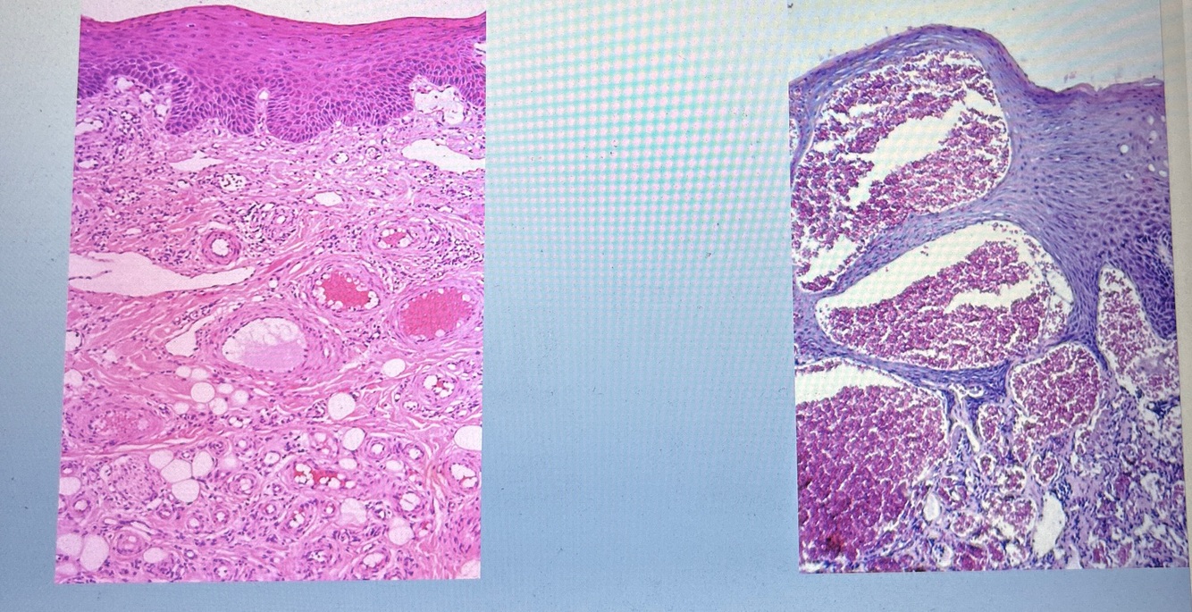Dark lesion- slow moving blood- varicosities