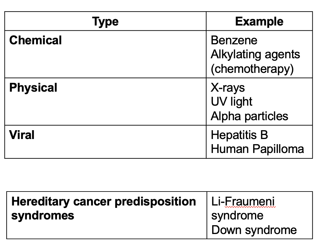 Describe the four main types of carcinogens.