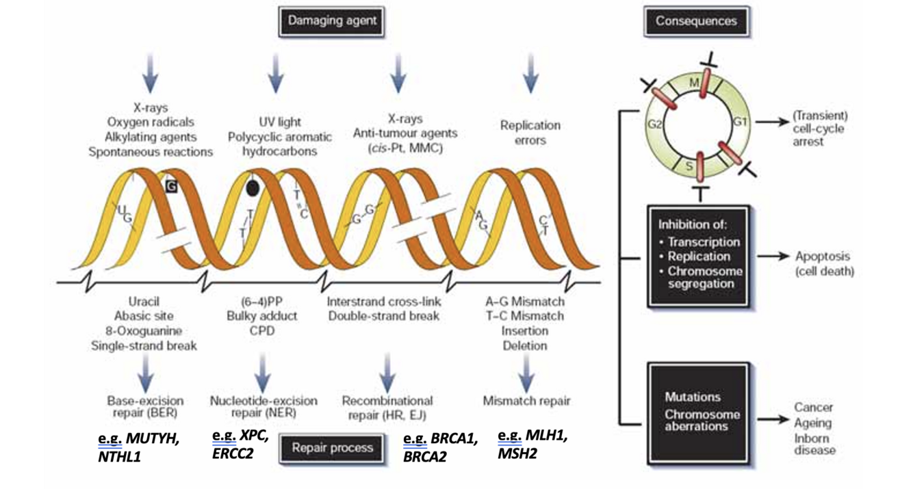 Repair mechanisms of DNA damage
