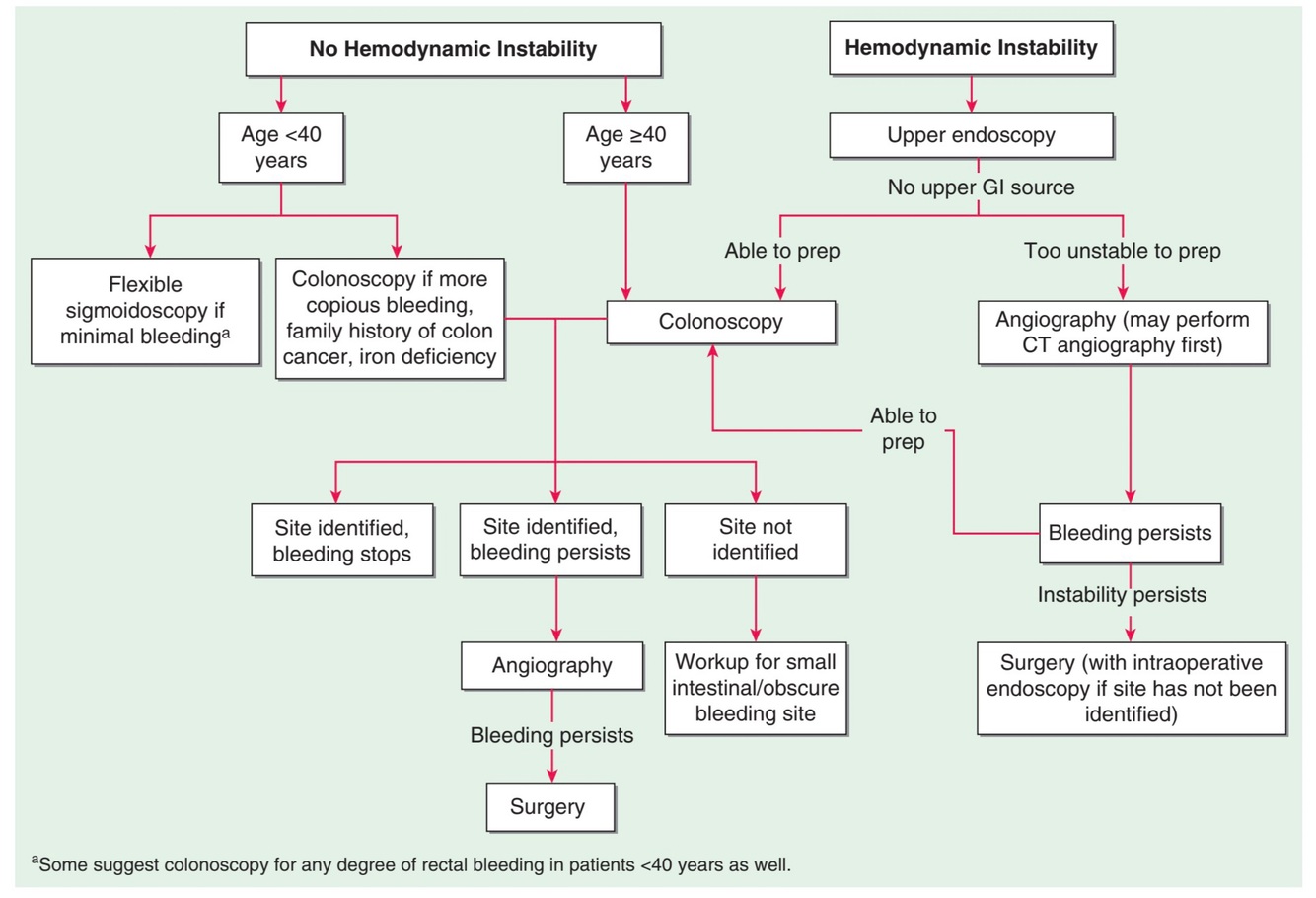 d. If with no signs of hemodynamic instability but bleeding persists despite identifying site post colonoscopy, abdominal CT scan is warranted