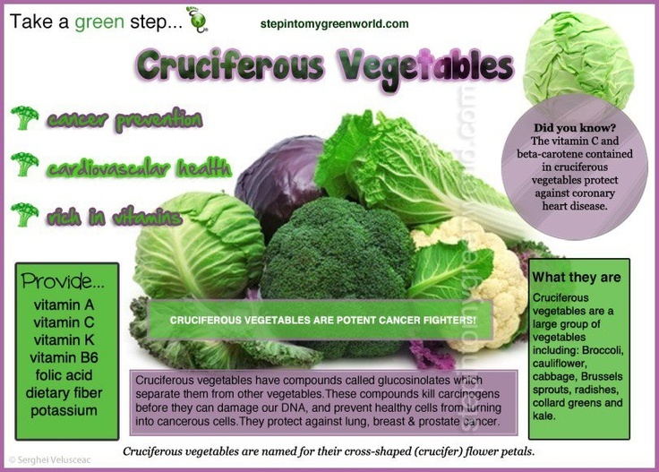 Broccoli, cauliflower, and cabbage Colored vegies (red bell pepper, carrots, squash) anything with a lot of color to it. can all decrease your risk of cancer