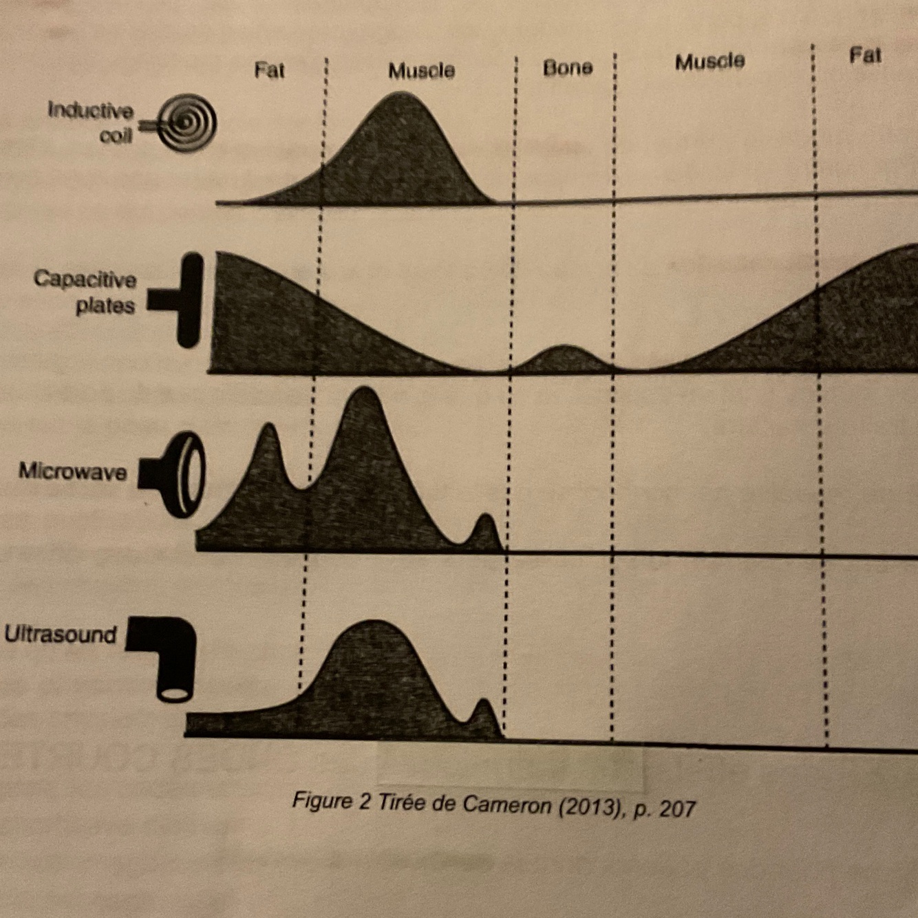 -> + tissus vascularisé/ conducteur, + courant passe -> accumulation chaleur