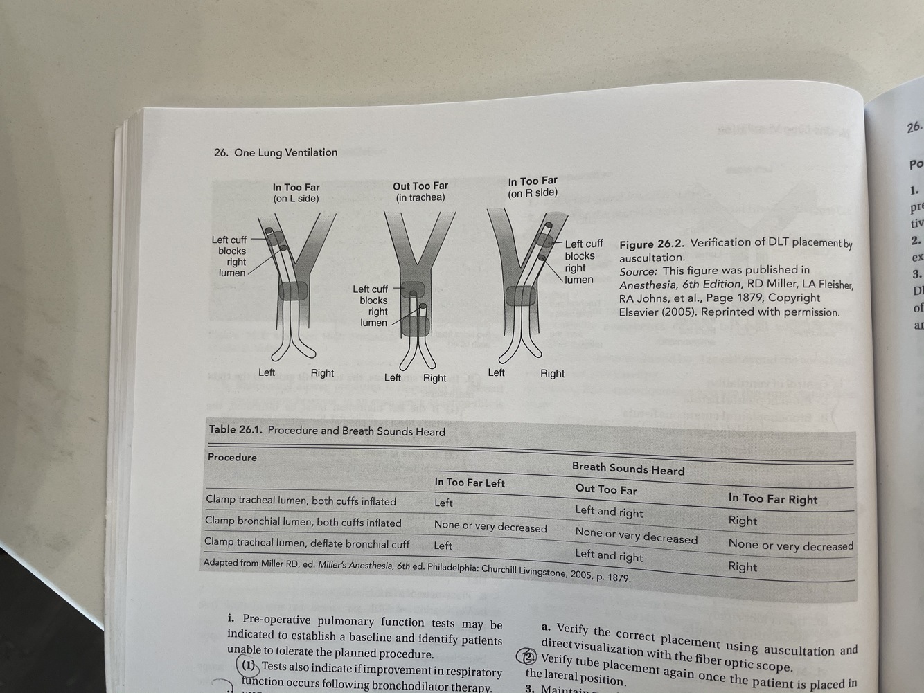 Go over the postioning and what you would hear as far as breath sounds if a left sided DLT-in too far on left side, out too far in trachea, in too far on right side