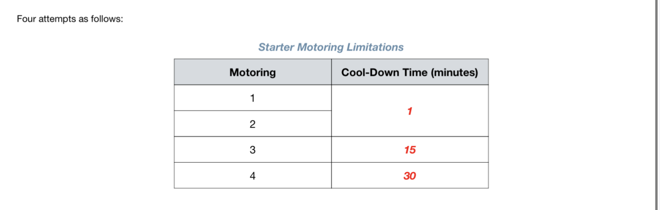 Starter limitations