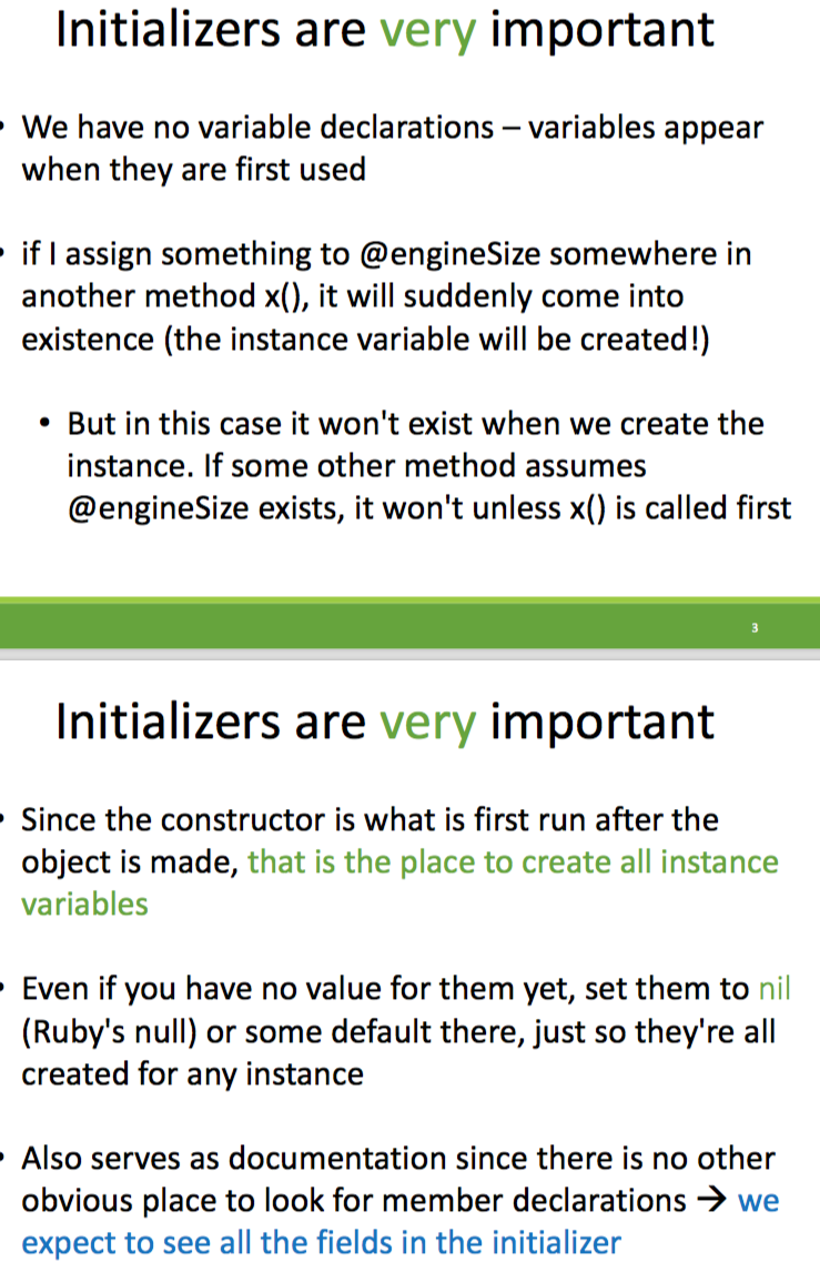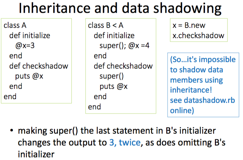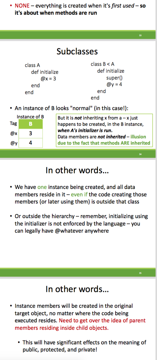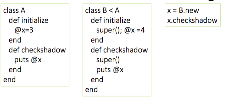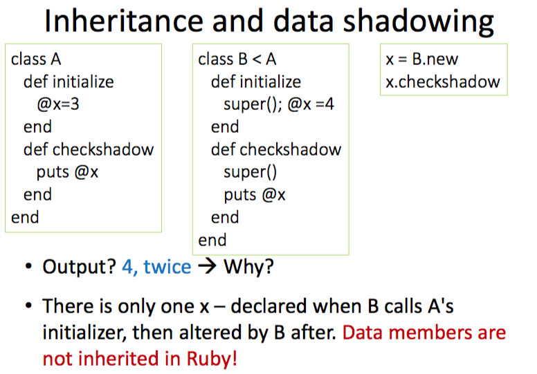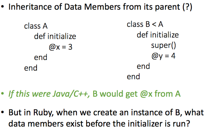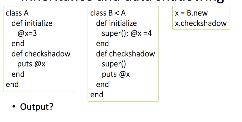 For the following code, if we made super( ) the last statement in B’s initializer, what would the output be?