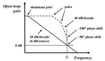 > The open-loop gain is rolled off to unity at a frequency where the phase shift is well below -180°