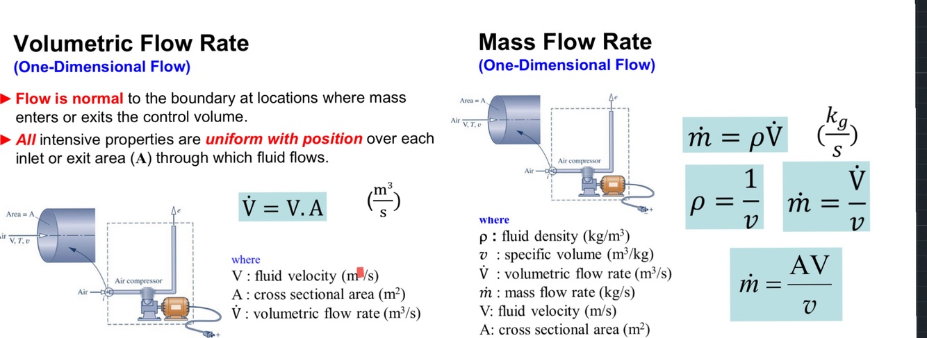 What are the Equations associated with Volumetric Flow Rate and Mass Flow Rate