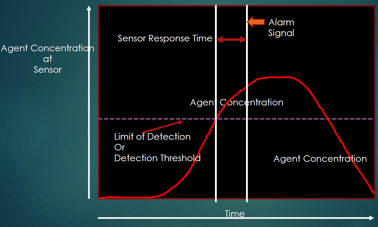 limit of detection or detection threshold - the minimum agent concentration required for a sensor to generate an alarm.