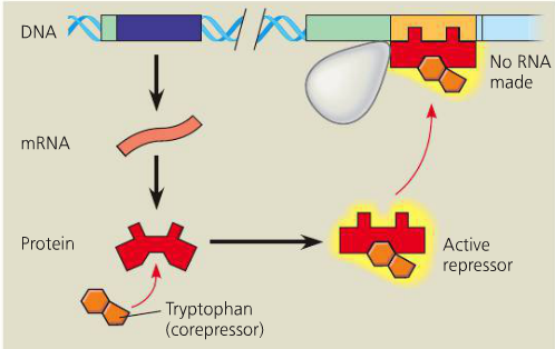 Repressible operons are usually on, because of the presence of an inactive repressor, but can be activated with the presence of a small molecule (corepressor)