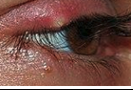 A patient presents to the clinic with unilateral eye pain, tearing, and irritation. She had a blepharitis a few weeks ago that was untreated. You notice a focal area of subcutaneous erythema that is tender to the touch.