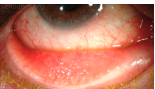 A patient presents to clinic with eye pain without discharge. She denies any allergies or sickness. The eyelids appear normal.