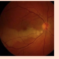 A 45 yo patient presents to the clinic complaining of left eye vision loss. On physical exam you do not see any redness, discharge or pain. On slip lamp exam you notice the retina looks white in segments.