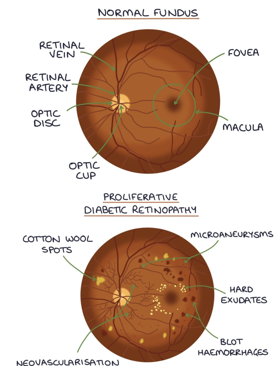 Complications: vision loss, retinal dettachment, vitreous haemorrhage