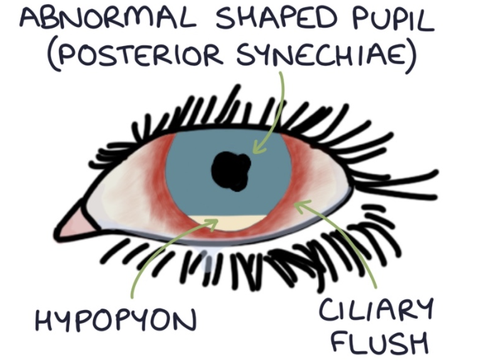 Sclera similar to connective tissue in joint, so can be affected in RA