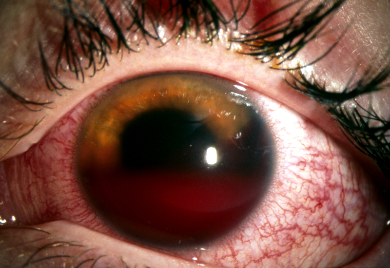 Blood in the anterior chamber