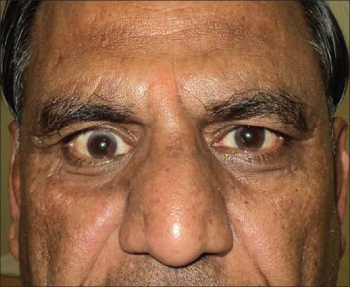One eye is lower than the other.