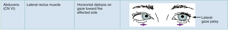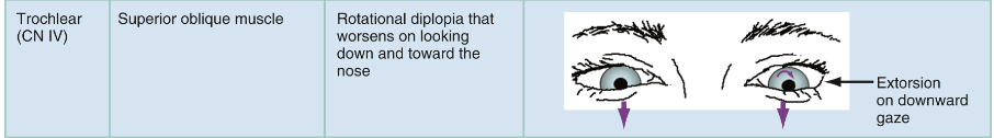 Diplopia worsens on lateral gaze toward ipsilateral side