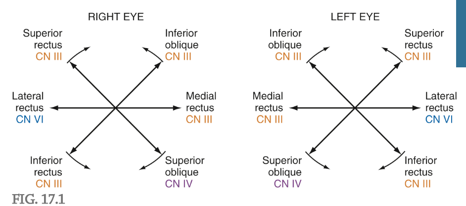 List 3 CNs responsible for EOM, and name the EOM muscles